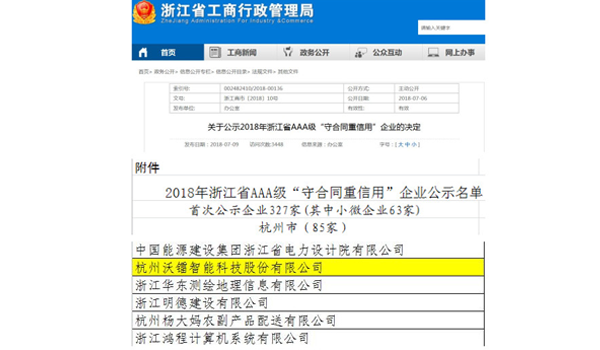 為促進(jìn)企業(yè)加強(qiáng)合同管理和誠(chéng)信建設(shè),根據(jù)《浙江省“守合同重信用”企業(yè)公示辦法》的規(guī)定,經(jīng)企業(yè)自愿申報(bào)、各地推薦、省工商局研究,杭州沃鐳智能科技股份有限公司被評(píng)為2018年浙江省AAA級(jí)“守合同重信用”企業(yè)。