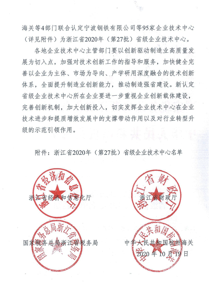 近日,浙江省經(jīng)濟(jì)和信息化廳公布了浙江省2020年(第27批)省級(jí)企業(yè)技術(shù)中心名單,沃鐳智能喜獲“浙江省企業(yè)技術(shù)中心”榮譽(yù)稱號(hào)。